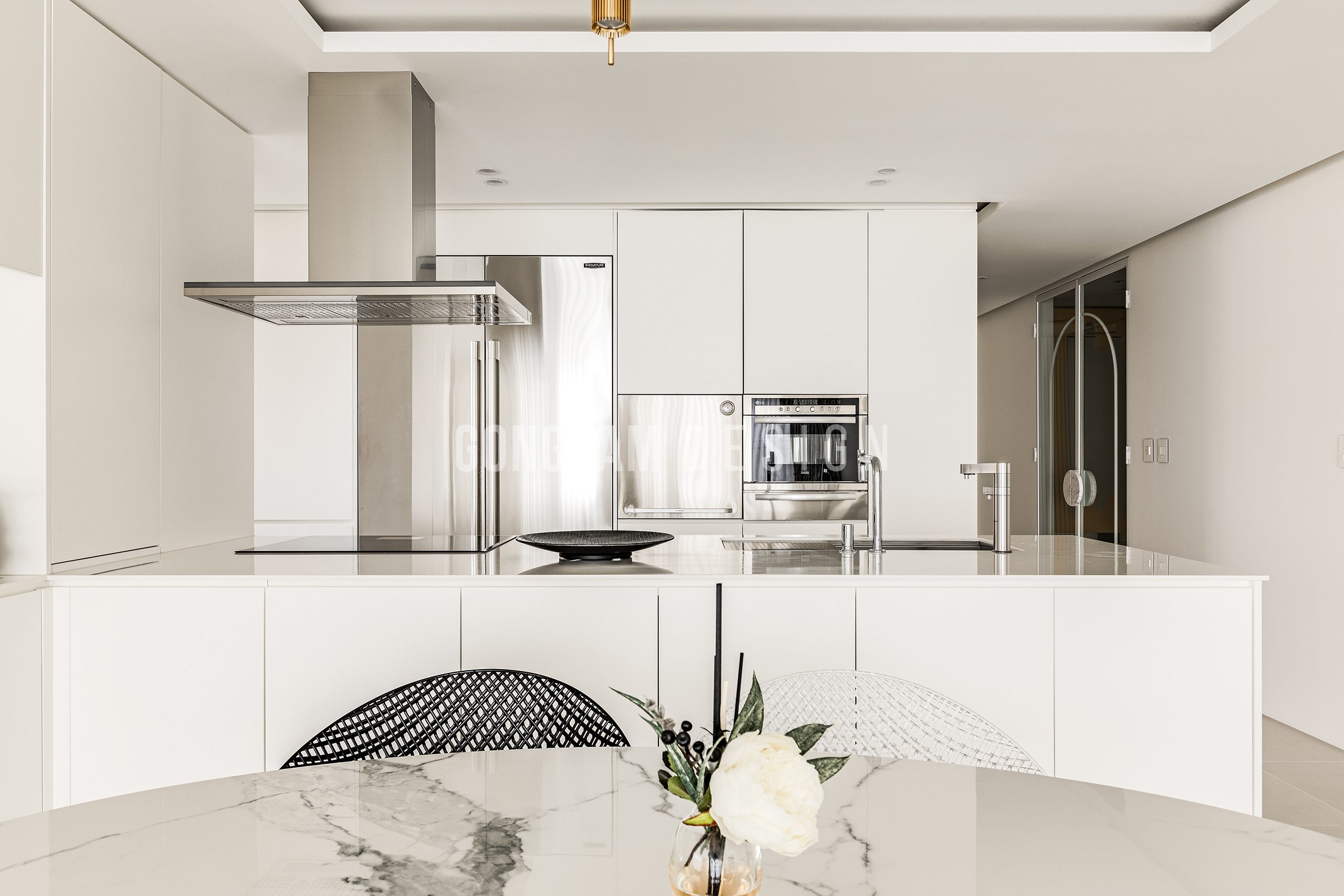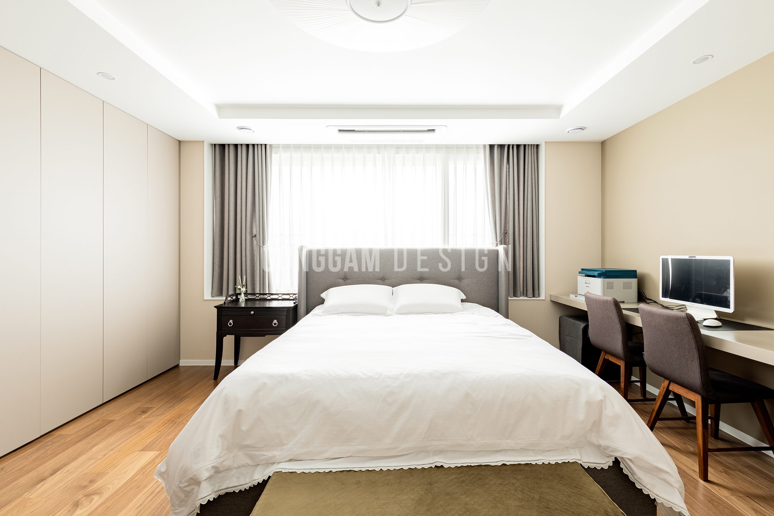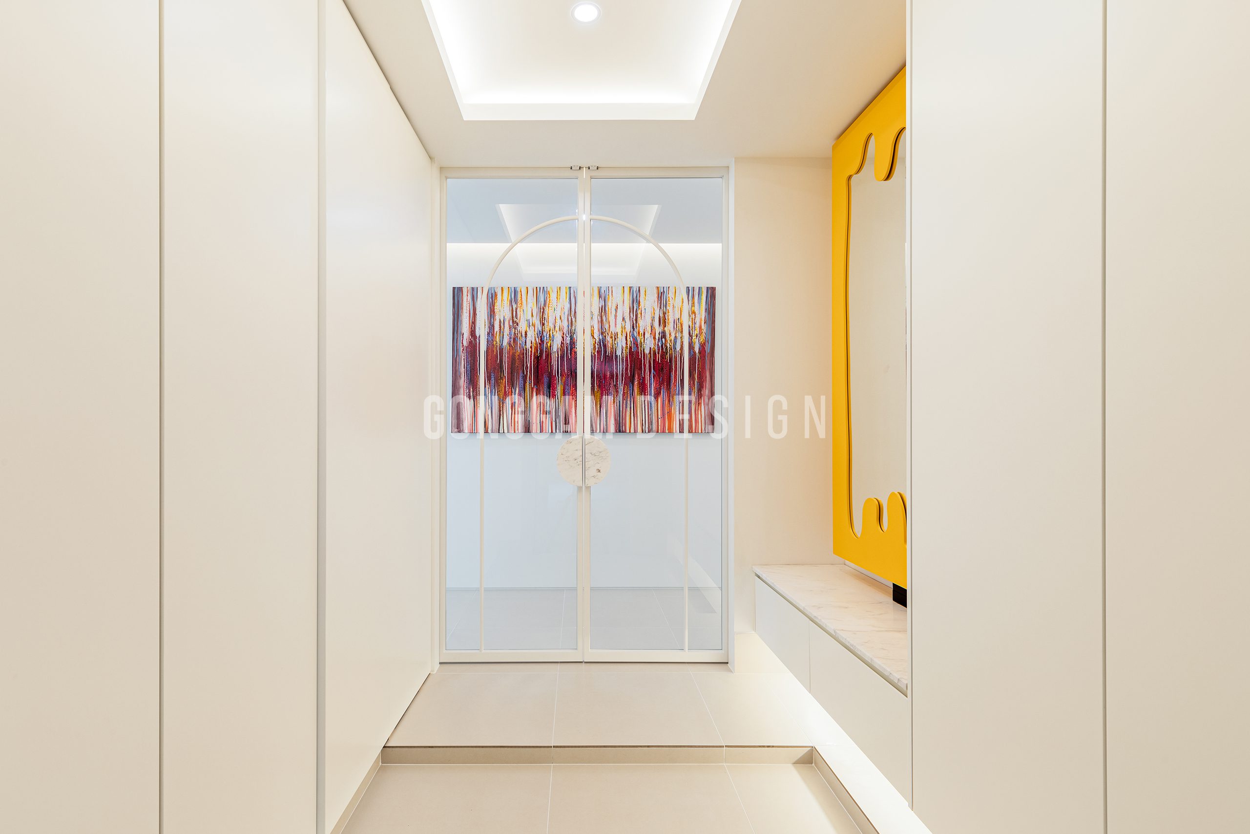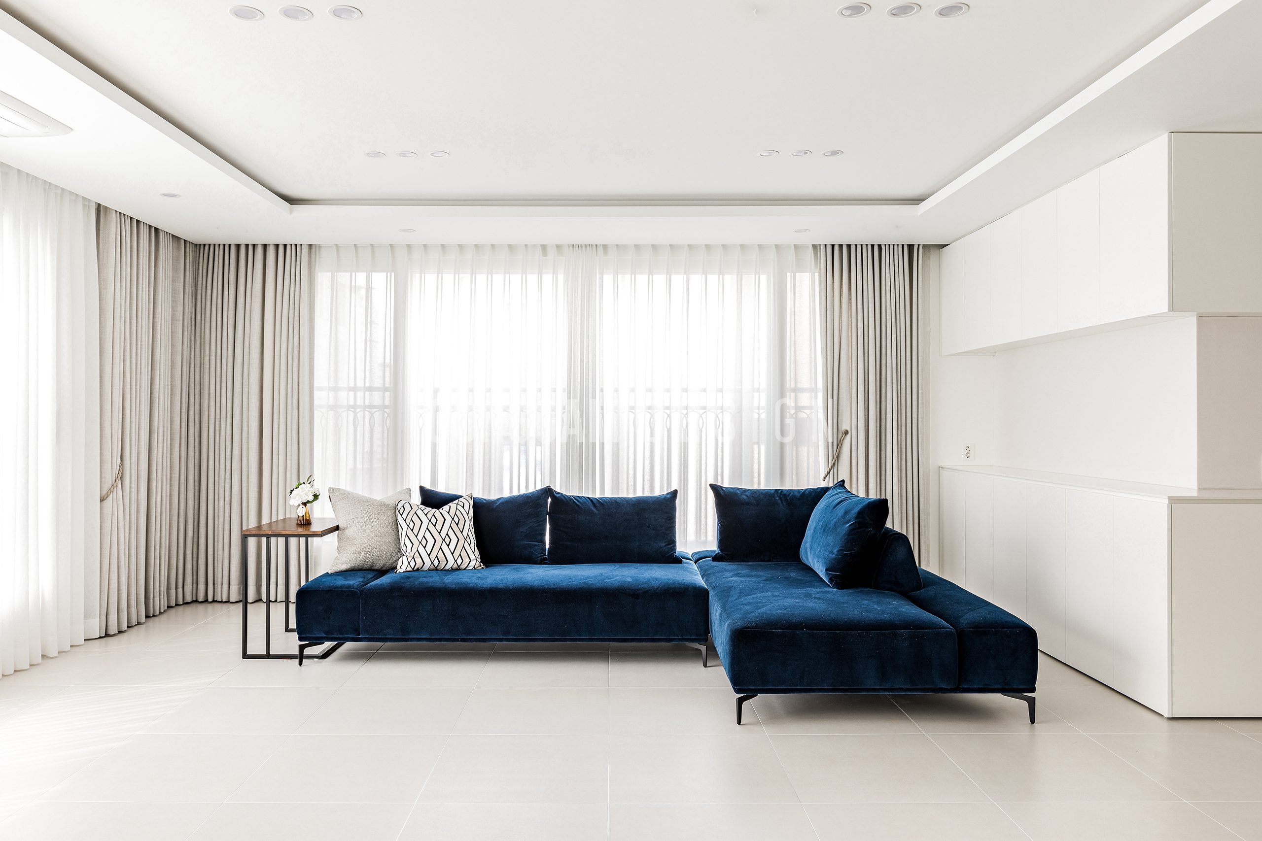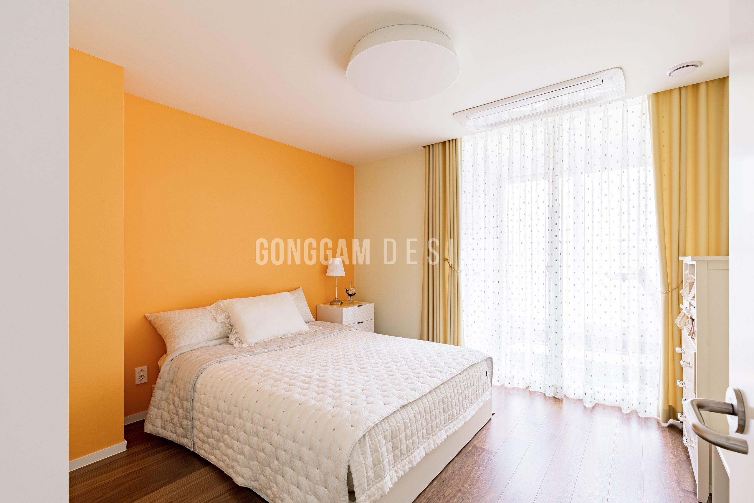 화이트인테리어, 모던인테리어, 무몰딩, 무문선, 천연마루, 히든도어, 루버패널, 제작가구, 홈스타일링, 철재중문, 옐로우컬러포인트